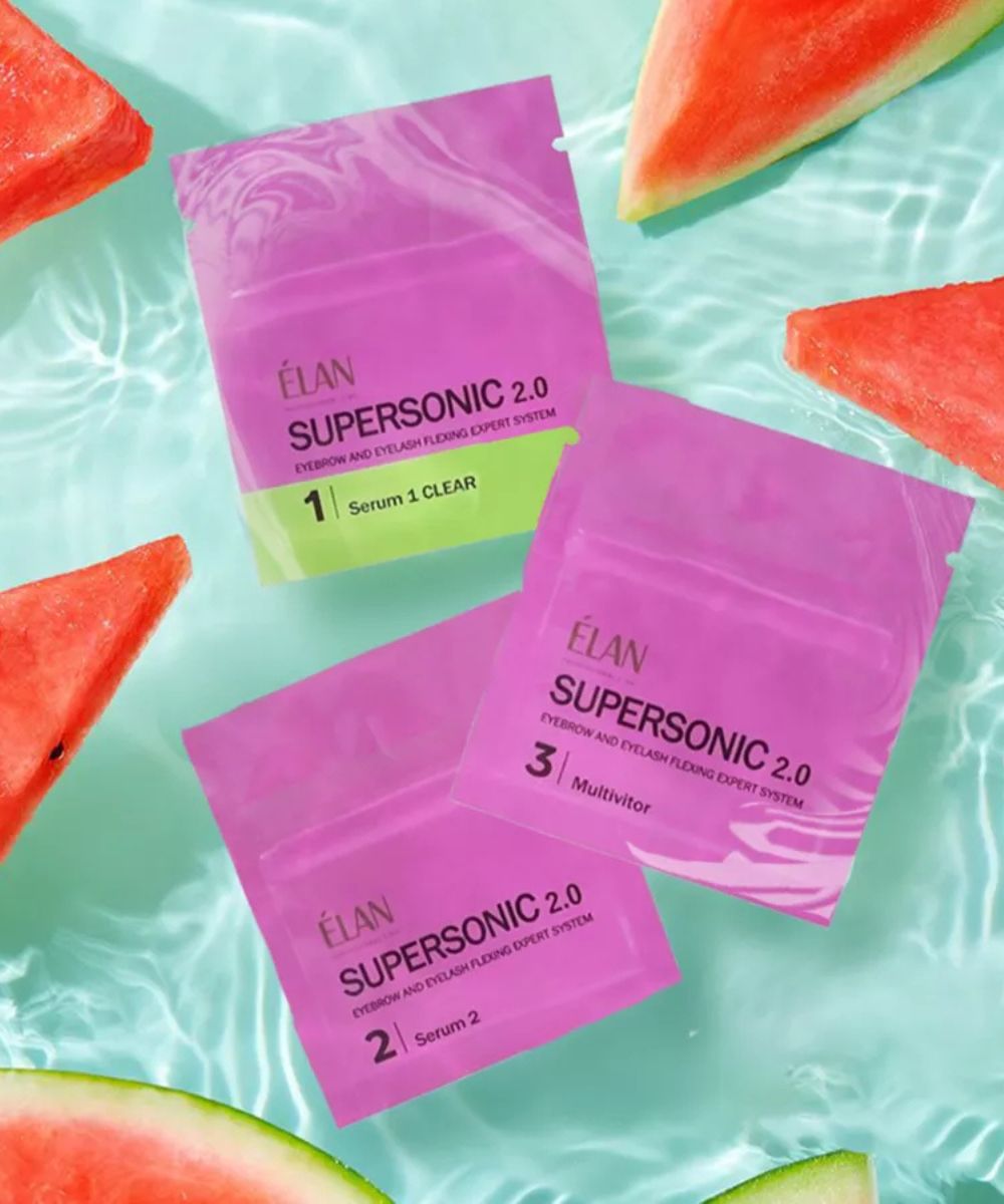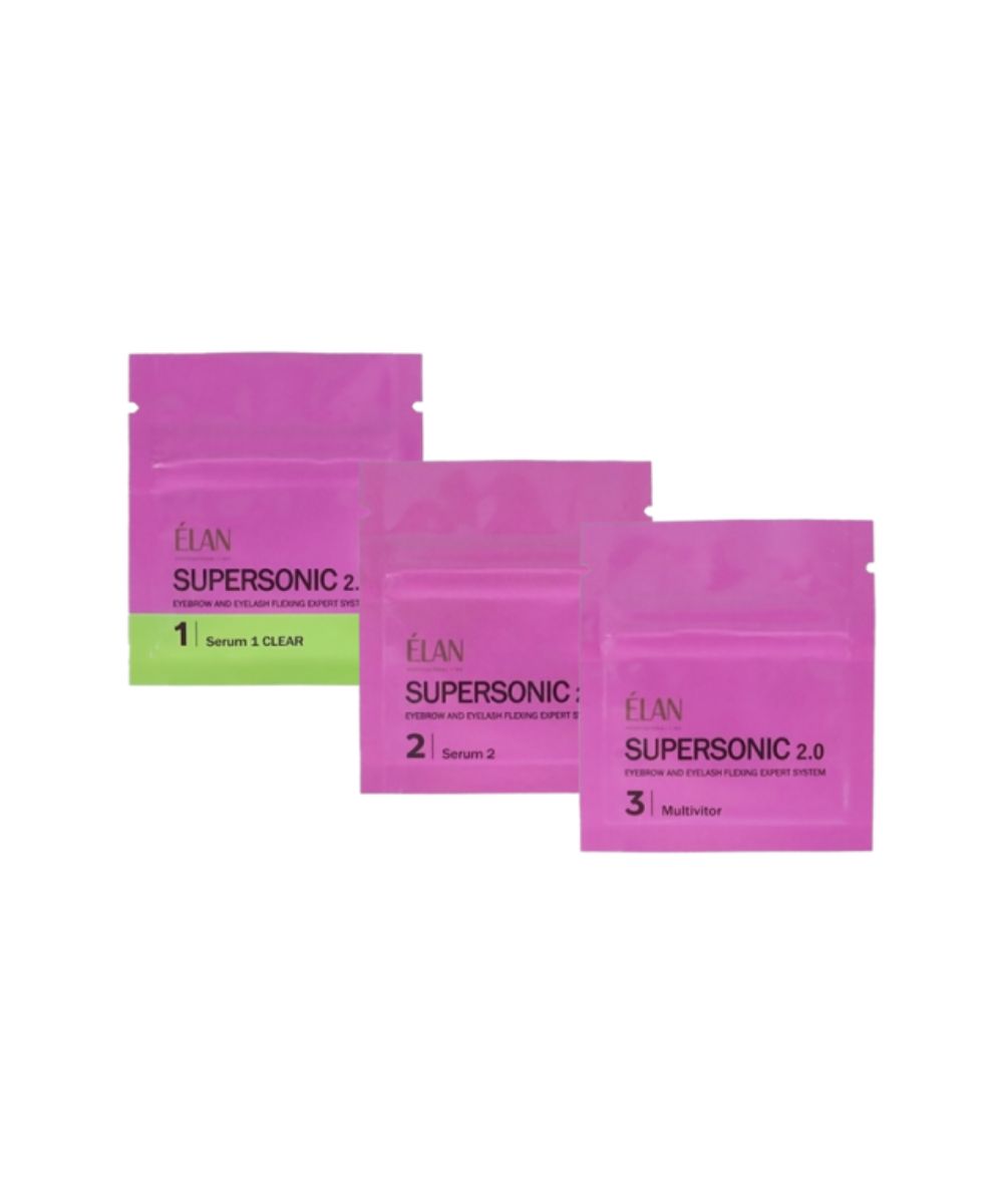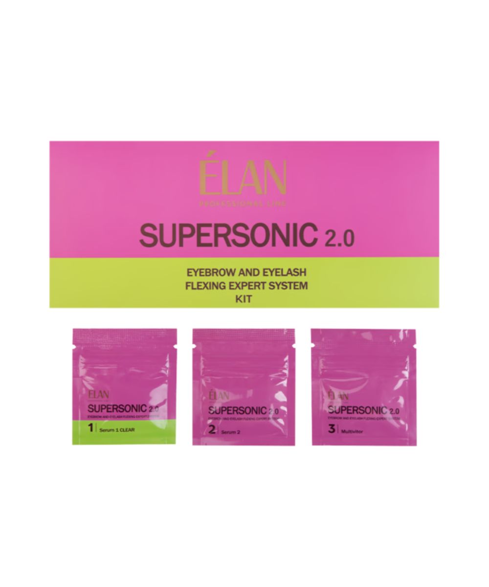 ELAN SUPERSONIC 2.0 on ammattimainen kolmivaiheinen järjestelmä kulmakarvojen ja ripsien laminointiin. Sarjan avulla voit muuttaa karvojen muotoa, korjata tuloksen ja halutessasi myös värjätä ne – kaikki yhdellä toimenpiteellä. Päivitetyn koostumuksen ansiosta toimenpide suoritetaan nopeasti ja turvallisesti vahingoittamatta hiusten rakennetta.
