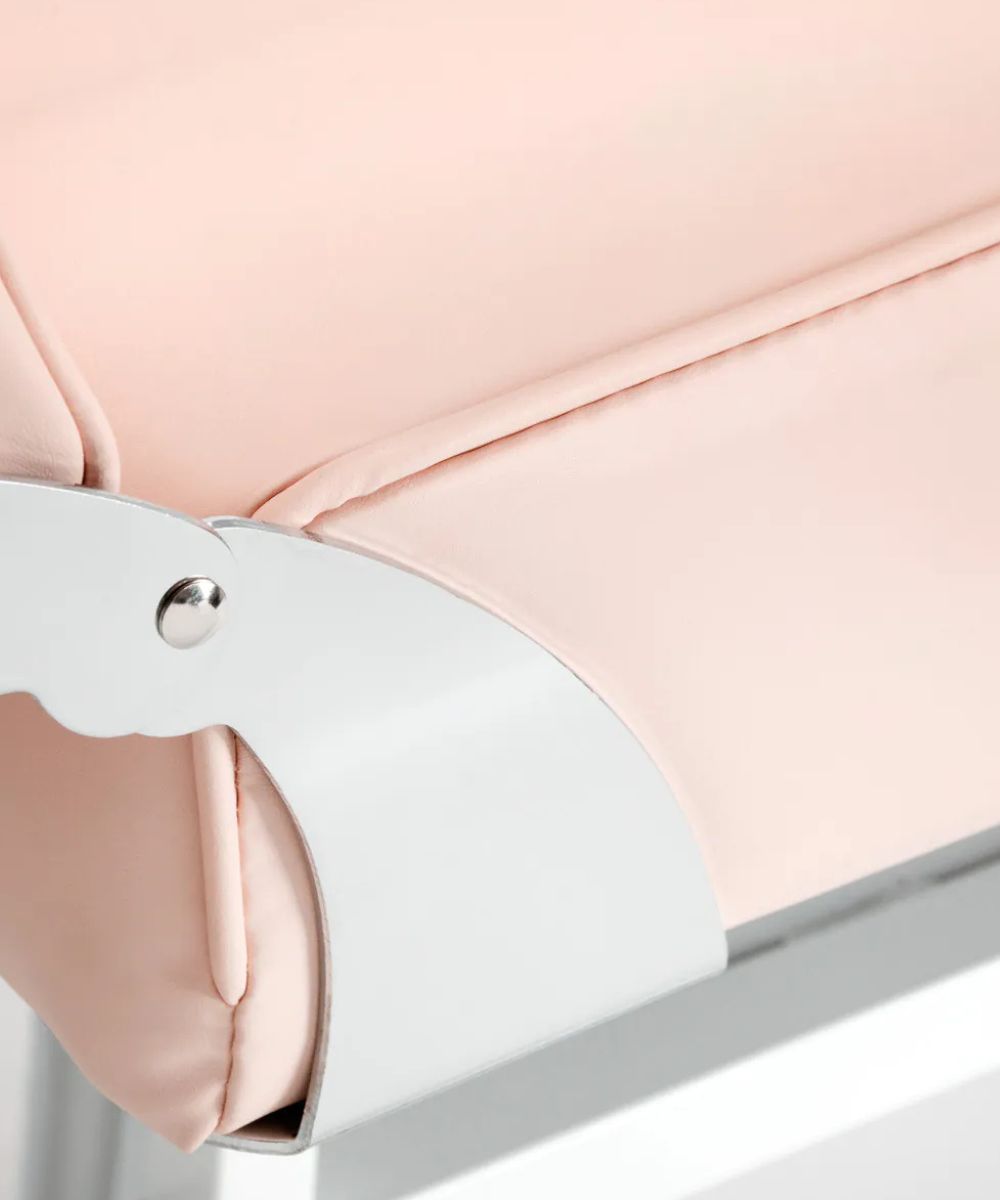 Tool on täidetud paraja tugevusega vahuga ja kaetud poolmati roosades toonides kunstnahaga. Tänu sellele materjalile on tool mugav kasutada, niiskuskindel ja lihtsasti puhastatav. Hästi vormitud ääred annavad istmele ergonoomilise kuju. Tugev konstruktsioon tagab vastupidavuse ja stabiilsuse. Lihtne disain ja klassikalised värvid võimaldavad toolil sobituda igasse interjööri.