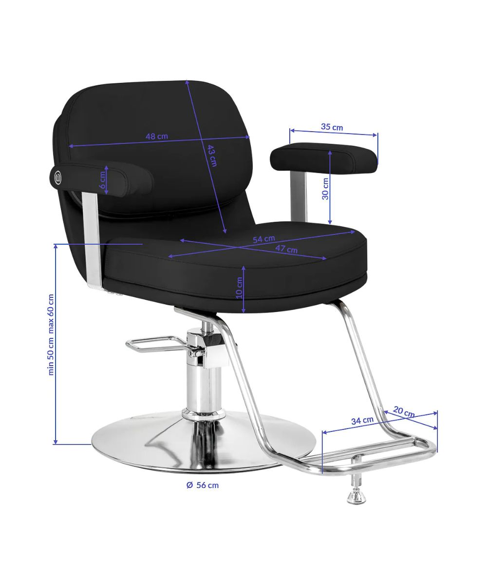 Mallille on ominaista moderni ja hillitty tyyli, joka korostaa täydellisesti salongin ammattimaista ilmettä. Korkealaatuisesta keinonahasta valmistettu verhoilu elegantissa mustassa sävyssä antaa tuolille kevyen ja tyylikkään ulkonäön.