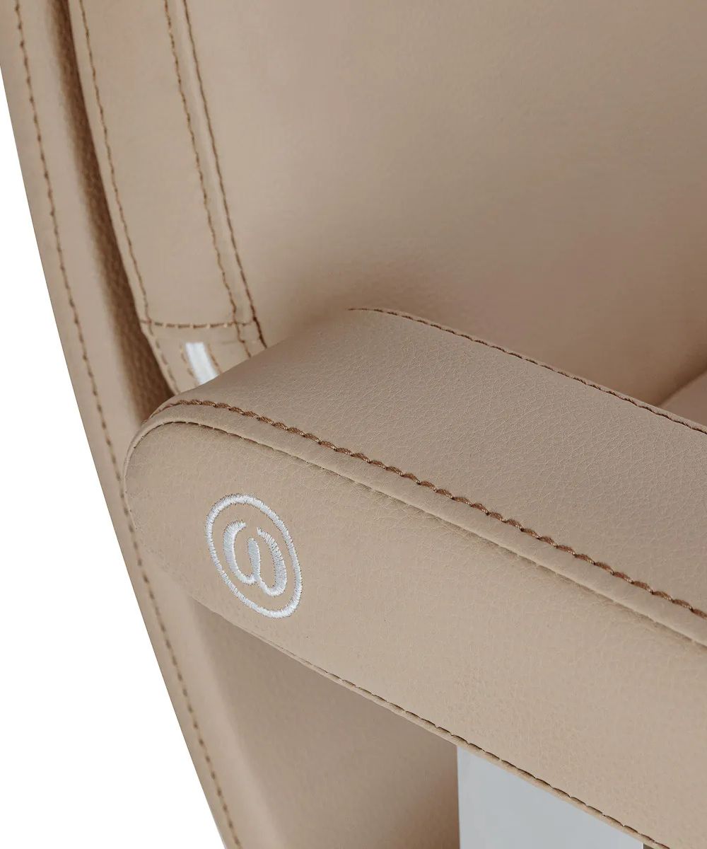 Tuolin muotoilu varmistaa mukavuuden myös pidempien toimenpiteiden aikana. Ergonomisesti muotoiltu istuin auttaa pitämään vartalon mukavassa asennossa, ja pehmustetut käsinojat tarjoavat vakaan tuen käsille. Leveä istuin lisää entisestään asiakkaan mukavuutta.