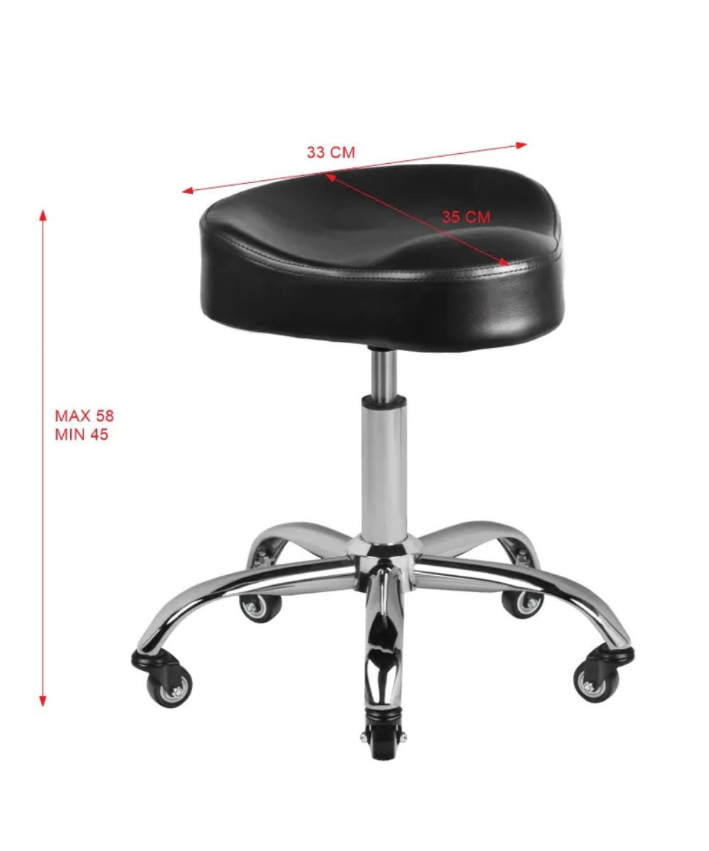 Pehme ja eriti mugav iste on kaetud kvaliteetse musta kunstnahaga, mis on vastupidav, lihtsasti puhastatav ning sobib ideaalselt salongikeskkonda. Tänu läbimõeldud disainile toetab tool mugavat tööasendit ka pikemate tööpäevade jooksul.