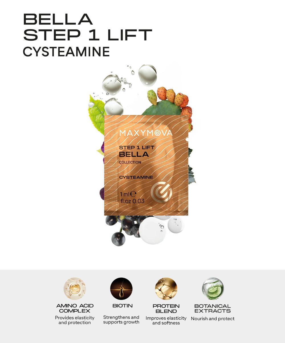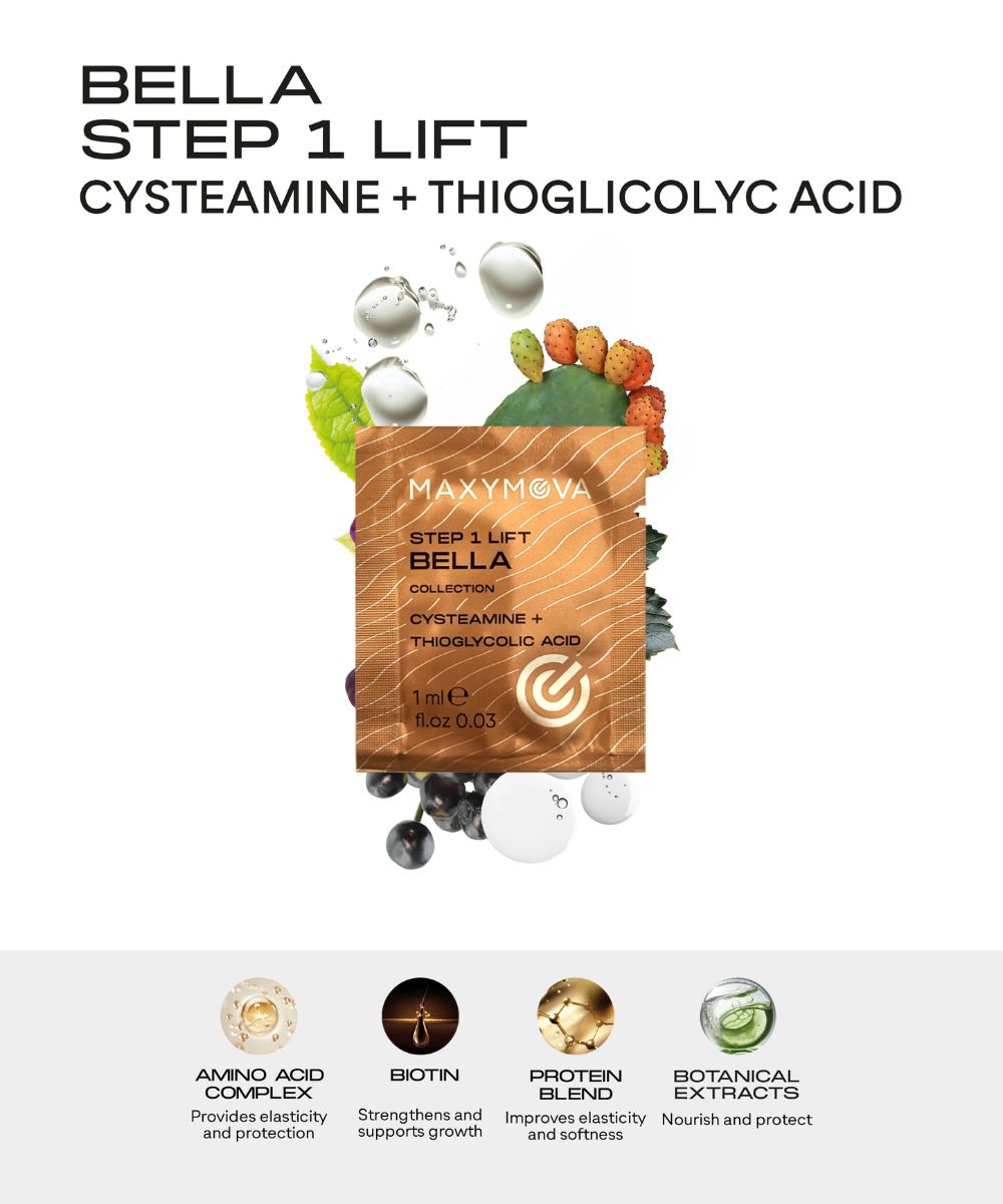 STEP 1 LIFT CYSTEAMINE- Aqua (Water), Cysteamine HCl, Ethanolamine, Cetearyl Alcohol, Oleyl Alcohol, Glyceryl Stearate, PEG-100 Stearate, Urea, Parfum (Fragrance), Phenoxyethanol, Ethylhexylglycerin, Linalool, Benzyl Salicylate, Limonene, Benzyl Alcohol, Benzyl Benzoate, Guar Hydroxypropyltrimonium Chloride, Glycerin, Cysteine HCl, Arginine, Biotin, Hydrolyzed Wheat Protein, Hydrolyzed Rice Protein, Opuntia Ficus-Indica Stem Extract, Hydrolyzed Sweet Almond Protein, Camellia Sinensis Leaf Extract*, Sambucus Nigra Fruit Extract, Viola Tricolor Extract*, Spartium Junceum Flower Extract, Vitis Vinifera Leaf Extract (Vitis Vinifera (Grape) Leaf Extract)*, Hydrolyzed Hemp Seed Extract.