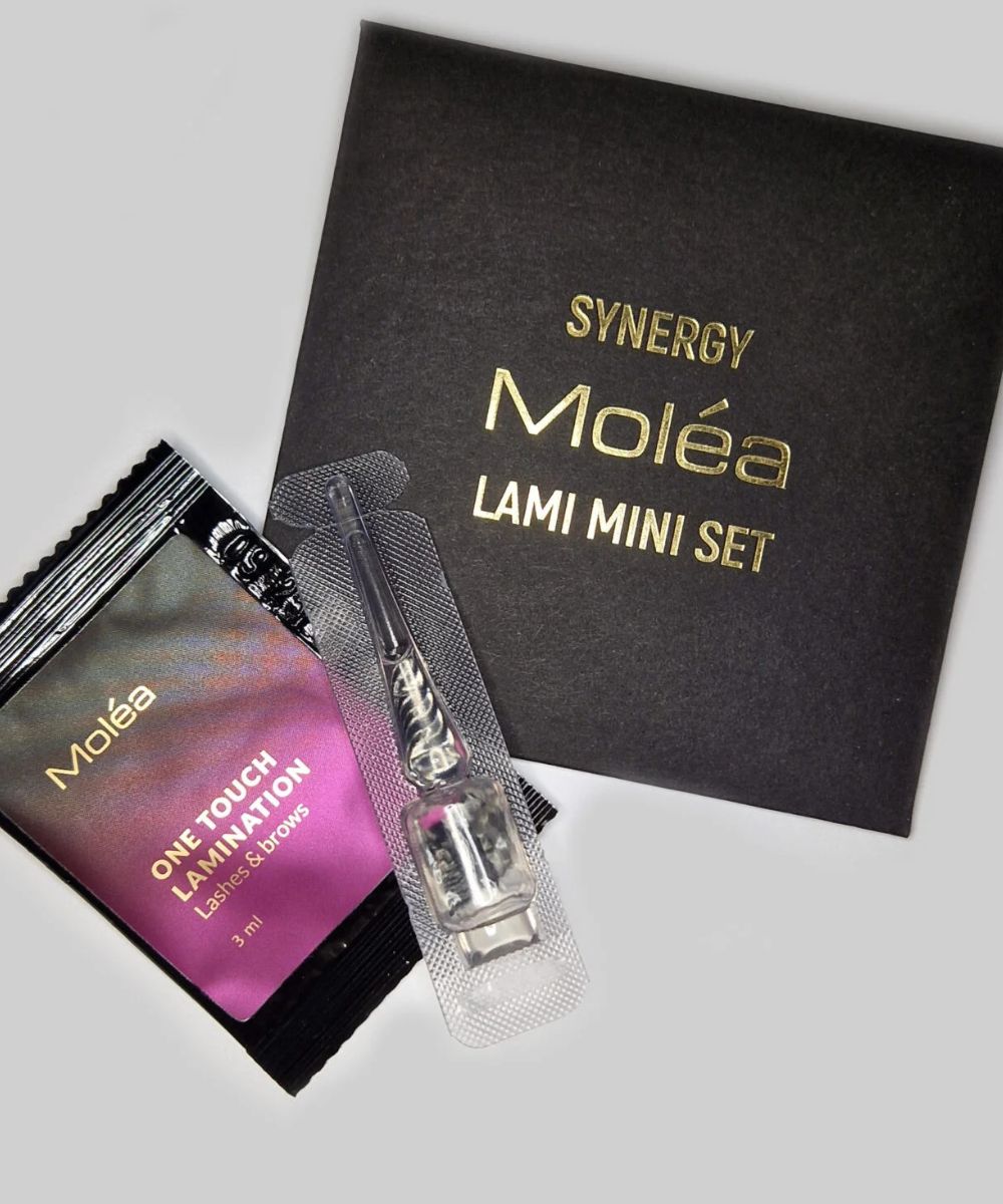 Moléa Mini Lamination Set on kompaktne komplekt, mis ühendab endas üheastmelise ONE TOUCH MONOSTEP LAMINATION valemi ja hooldava pärastprotseduuri toote. Ideaalne meistrile ühekordseks protseduuriks või testimiseks. Õrn, kuid tõhus koostis muudab karvastruktuuri, kujundab soovitud vormi ja fikseerib karvad täpselt paika, pakkudes samal ajal toitevate aktiivainete kompleksi kaudu kaitset ja hooldust.